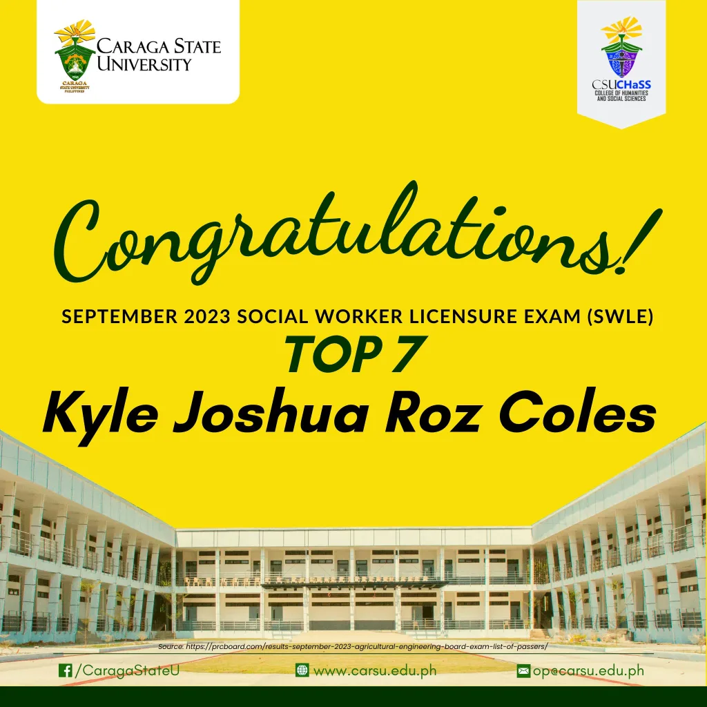 BSSW’s Kyle Joshua Roz Coles clinched the 7th spot in the roll of successful examinees this year.