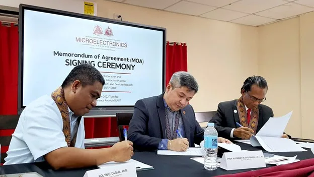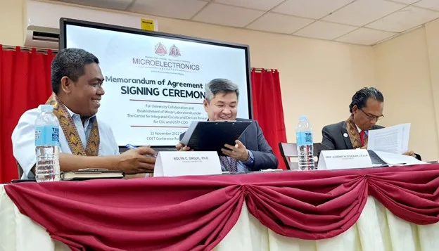 Dr. Daguil signed the MOA for CSU with Chancellor Atty. Alizedney M. Ditucalan for MSU-IIT, and Atty. Dionel O. Albina, Chancellor of the USTP Main Campus. The Center for Integrated Circuits and Devices Research (CIDR) project is a Department of Science and Technology (DOST) funded initiative that aims to: (1) strengthen our national capability on integrated circuit (IC) design, (2) increase economic competitiveness in the electronics and semiconductor industry, and (3) establish a sustainable local IC design ecosystem to reduce the risk of bringing products to market for technology commercialization. To achieve these goals, the project will establish mirror laboratories at CSU and USTP.