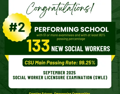 CSU is Top 2 in PH; produces 133 newly registered Social Workers, 11 top examinees