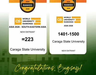 Bugsay on and on! Despite being a new entrant, Caraga State University (CSU) is already ranked 18th among ...