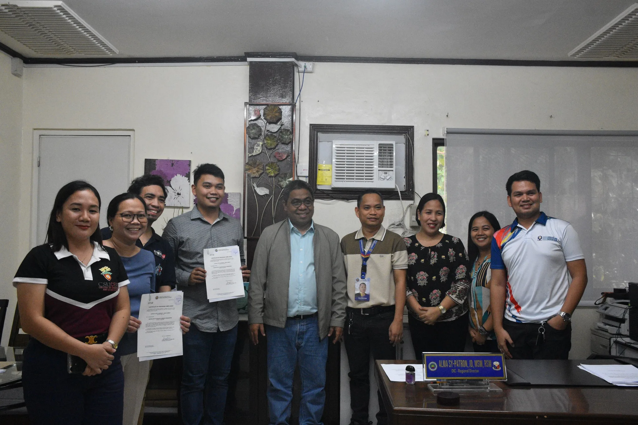 The COPCs for the Bachelor of Mining Engineering (BSEM) and Bachelor of Science in Civil Engineering (BSCE) were received by University President Dr. Rolyn C. Daguil, outgoing College Dean Engr. Lorie Cris S. Asube, and new College Dean Engr. Anamarie P. Sajonia from Engr. Criseldo C. Calinawan, PhD., PECE, CHED-Caraga’s Education Program Supervisor II – Engineering Programs.