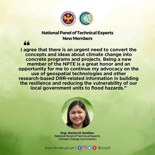 College of Engineering and Geosciences (CEGS) dean, Engr. Meriam M. Santillan, has been chosen as one of the panel of experts in the NPTE or National Panel of Technical Experts working under the Climate Change Commission. Engr. Santillan was among one of the 16 selected panel members out of the 130 nominees.