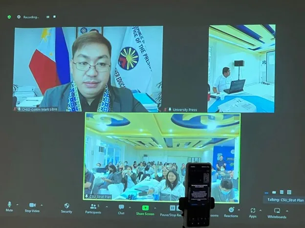 In his usual classy gait and demeanor CSU BOR-Chair, CHED Commissioner Jo Mark Libre virtually addressed the members of the CSU Executive Committee on its opening of 2023-2028 Strategic Planning held at the Horizon Bay Resort in Magallanes, Agusan del Norte on December 5-7, 2022.