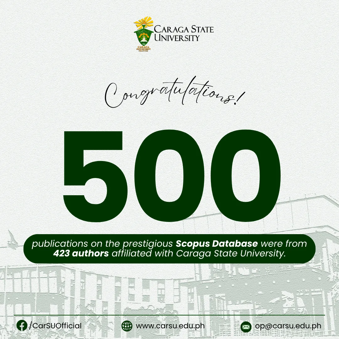 The Caraga State University (CSU) is proud to announce a remarkable milestone in its research endeavors, surpassing an impressive 500 publications on the prestigious Scopus database.