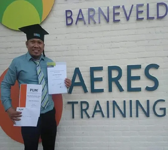 Mr. John Mark Ramada from the College of Agriculture and Agri-Industries was awarded the Best Pig Husbandry “Back Home Improvement Plan” (BHIP) by the Aeres Training Center International (ATCI), Barneveld, Netherlands on May 28, 2019. The award was given by Programma Uitzending Managers (PUM) Netherlands senior experts. PUM is a volunteer organization committed to the sustainable development of small and medium-size enterprises in developing countries and emerging markets. It has a network of about 150 representatives in around 30 countries around the world, connecting directly with entrepreneurs, business support organizations and local partners.