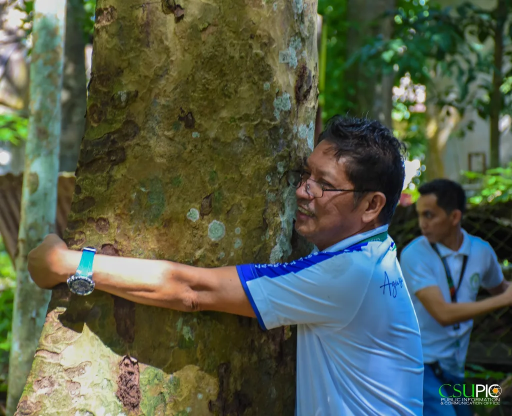 CSU also partnered with the Provincial Environment and Natural Resources Office (PENRO) – Agusan del Norte for a tree-hugging meditation activity. Participants were encouraged to connect, pay tribute to nature, and appreciate its benefits. PENR Officer Joseph Leo Oconer highlighted the significance of tree-hugging, which dates back to the 1970s as environmental activism in India. Nowadays, the same is promoted as a practice to improve mood and reduce stress, among other benefits, since it releases oxytocin, the hormone of love and trust that influences emotions and mental health.