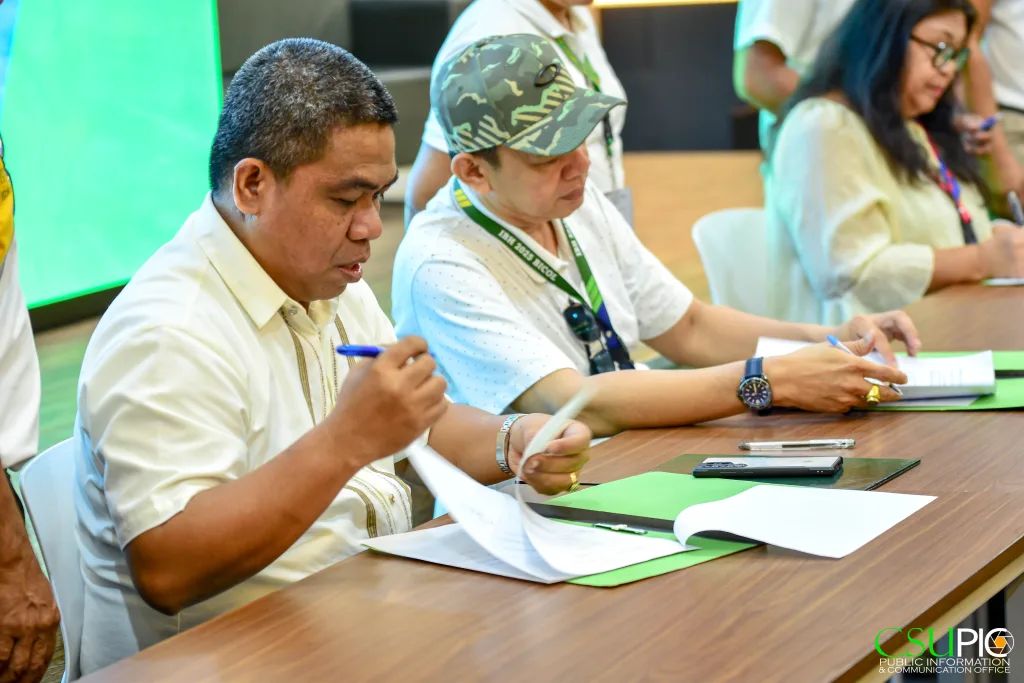 President Rolyn C. Daguil, DA Caraga Regional Executive Director Arlan M. Mangelen, and CSU-Butuan PGS Organic Farmers Association President Charles D. Ong signed the documents. Witnesses to the signing included Dr. Alexander C. Demetillo, Prof. Joel Arles Vergara, Eng. Neil Caesar Tado, Dr. Danilo Gaas, and Prof. Elizabeth Parac. │ via zmaarban/PICO