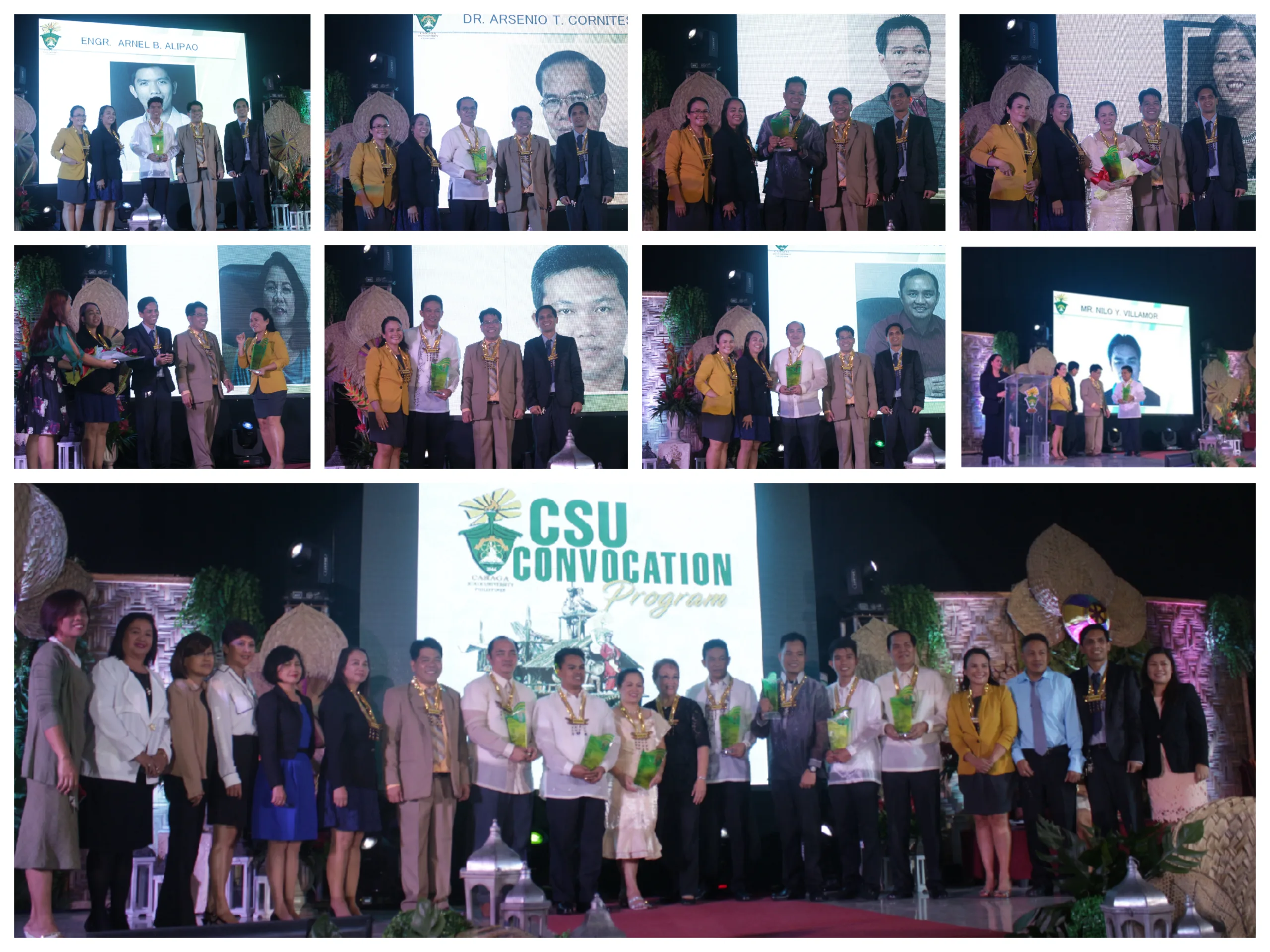 CSU President Anthony M. Penaso with the three Vice Presidents gave the awards to the eight Outstanding Alumni. Vice President for Research and Extension, Dr. Rowena P. Varela who is also the Convocation Officer of the Day did the Closing Statement while the Vice President for Administration and University Board Secretary Dr. Armie Leila M. Mordeno did the Opening Statement. Ms. Karen B. Burdeos acted as the emcee of the said event. The event was also attended by some members of the CSU Board of Regents, Ms. Concepcion C. Asis BOR Senate representative, Faculty Regent, Dr. Erico G. Alan, Student Regent, Ms. Deborah Jael L. Herrera, former CSU President, Dr. Joanna B. Cuenca, former CSU-CC Campus Director, Dr. Lolita P. Margañas, CSU First Lady, Madam Abigail Noemis T. Penaso and other stakeholders. piaea