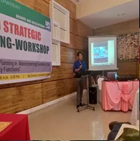 This is the first seminar-workshop on GAD Strategic Planning conducted for all administrative council members, department chairpersons, and GFPS members. It was done to equip them with the knowledge and skills to showcase the basic concepts on sex and gender, assess the stage of gender mainstreaming efforts of the University, subject respective units programs and projects to HGDG tools, and a three- year GAD Strategic Plan was produced as an output of the activity. LZB/pico