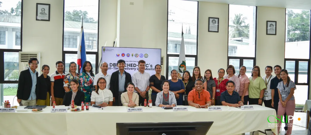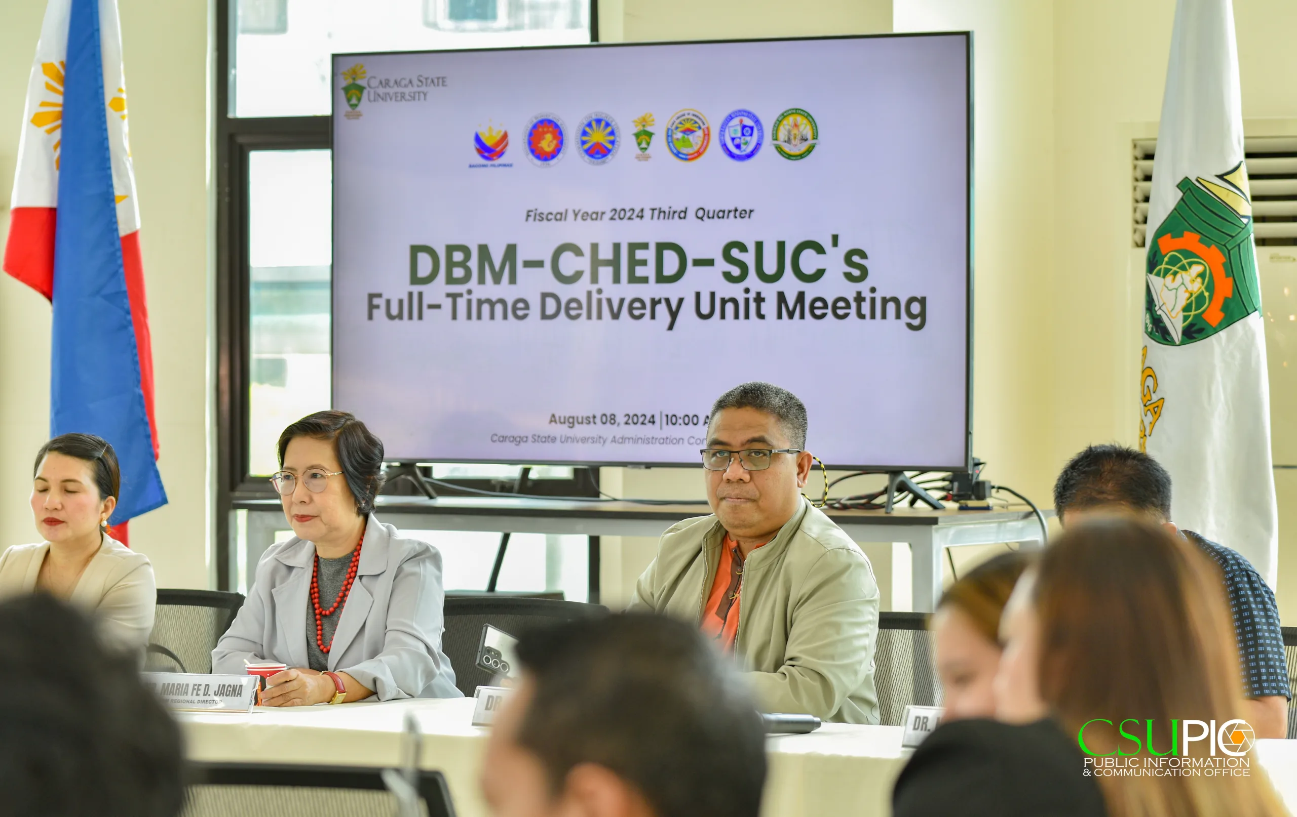 The Caraga State University (CSU) hosted the Third Quarter Full-Time Delivery Unit (FDU) meeting yesterday, August 8, 2024, with executives from the Department of Budget and Management (DBM), the Commission on Higher Education (CHED), and the four State Universities and Colleges (SUCs) of the Caraga region.