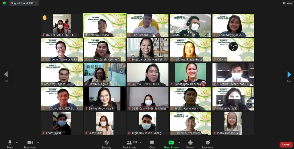 The Office of the Vice President for Administration and Finance (OVAF) headed by Dr. Armie Leila M. Mordeno through the office of Human Resource Management Services (HRMS) under Ms. Jenny Mae F. Bersabal, HRMS Director organized a virtual Refresher Session on Business Correspondence last September 7, 2021, via the Zoom platform.
