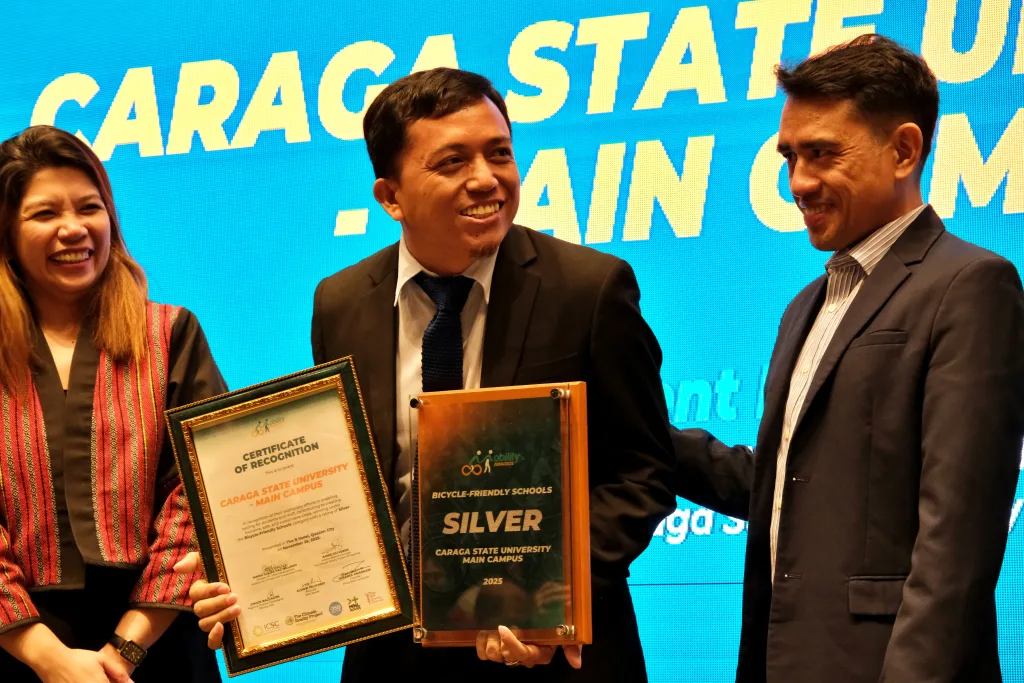 Caraga State University-Main Campus (CSU) secures the Silver Award in the prestigious Mobility Awards 2025, held at the B Hotel, Quezon City. This award, conferred during the National Bicycle Month, recognizes the university’s steadfast commitment to advancing sustainable mobility, promoting active transport, and implementing climate-resilient initiatives by paving the way for safer, greener, and healthier learning environments.