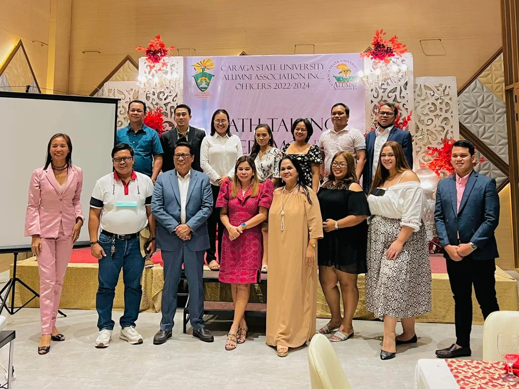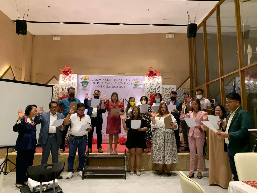 On June 8, 2022, 7:00 in the evening at the Pavilion X of Watergate Hotel, CSU President, Dr. Anthony M. Penaso inducted into office the new set of Caraga State University Alumni Association Inc. (CSUAAI) Officers 2022-2024.