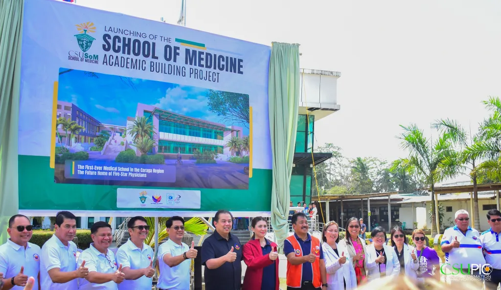 Caraga State University formally uncovered the academic building perspective of its School of Medicine (SoM) through a ceremonial unveiling at the New Administration Building on March 22, 2024.
