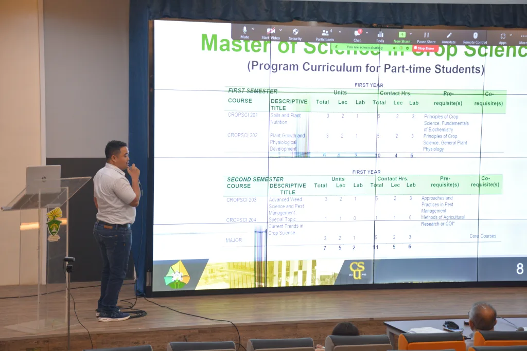 During the evaluation, Dr. Crishelo M. Cabillo presented the MS Crop Science program, while Dr. Rixie P. Magdugo discussed the MS Biology program. Dr. Minie L. Bulay, on the other hand, presented the MSciEd and Ph.D. SciEd programs and Dr. Job H. Domingo introduced the PhD Math Ed, PhD Math, MS Math, and MS Math Ed programs. Finally, Prof. James V. Presbitero presented the MS Information Technology program.