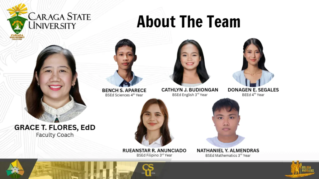 Caraga State University (CSU), through its College of Education (CEd) Golden Paddlers, emerged as the Overall Champion of the Busan–Philippines Global Education Innovation Challenge for Sustainable Cities, earning 400,000 Korean won in prize money during the virtual awarding ceremony held via Zoom on January 30, 2026.