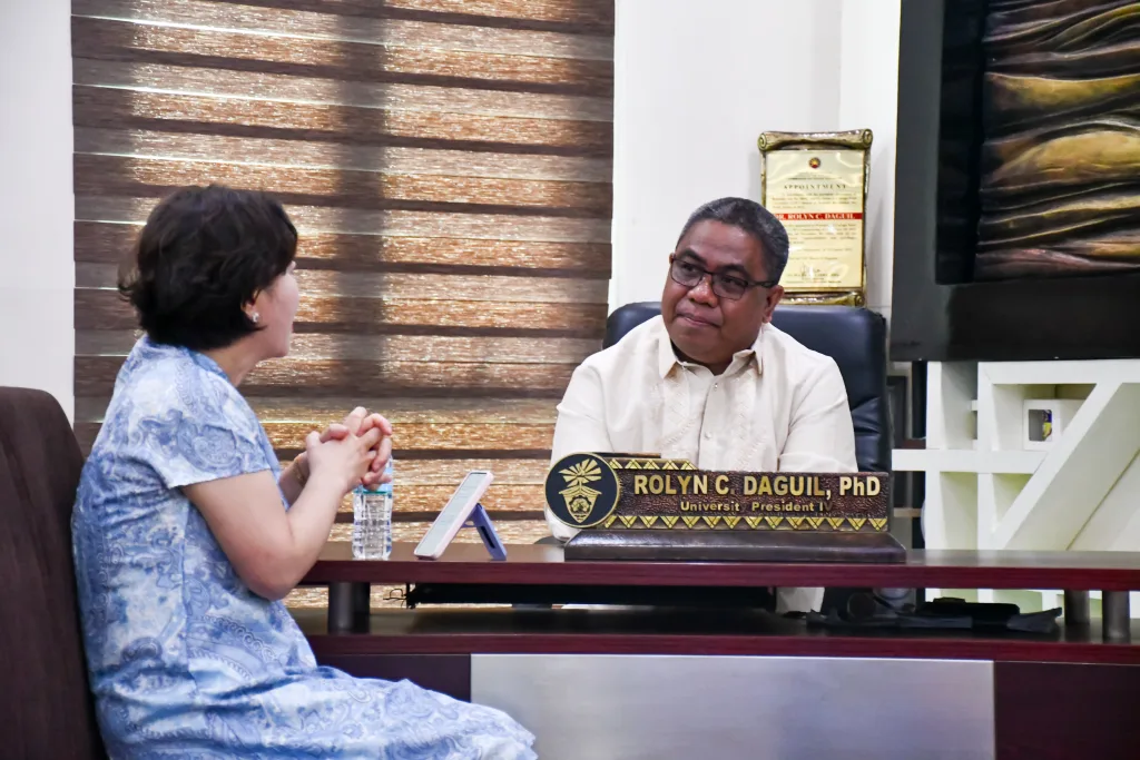 The following day, April 20, 2026, Professor Eunwha Lee paid a courtesy visit to the Office of the University President. Joining her were the CEd GS Program Chairperson and faculty members, namely Dr. Maris T. Lasco, Dr. Emybel M. Alegre, Dr. Grace T. Flores, and Dr. Sonia R. Low. During the visit, CSU President Rolyn C. Daguil, CEd GS Program Coordinators, and Professor Lee discussed topics centered on strengthening academic partnerships, exploring opportunities for collaborative research, and expanding international engagements aligned with the university’s vision for global academic excellence and innovation.