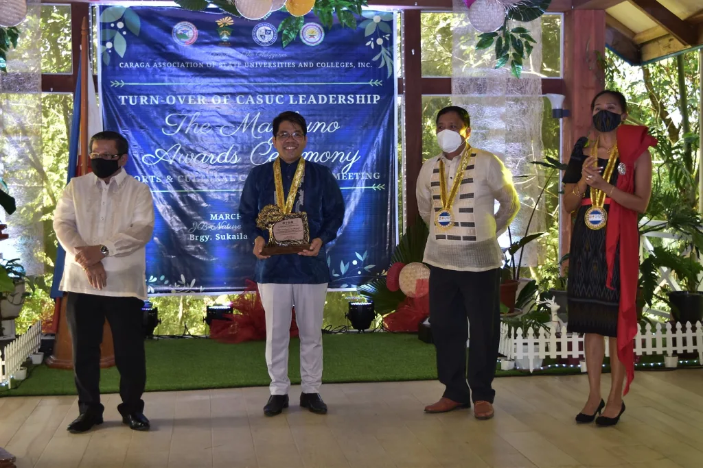 CASUC Coordinators from four (4) State Universities and Colleges (SUCs) namely: Agusan del Sur State College of Agriculture and Technology (ASSCAT), Caraga State University, Surigao del Sur State University (SDSSU), and Surigao State College of Technology (SSCT) were also given the Magkuno Achievement Award. The award is given for exemplary leadership and dedicated service as CASUC delegation official, trainer, and coach in various State Colleges and Universities Athletic Association (SCUAA) and Philippine Association of State Universities and Colleges (PASUC) activities. It is also to recognize the entities’ unwavering commitment and immense contribution to the advancement of sports, culture, and the arts in the Caraga Region and beyond.