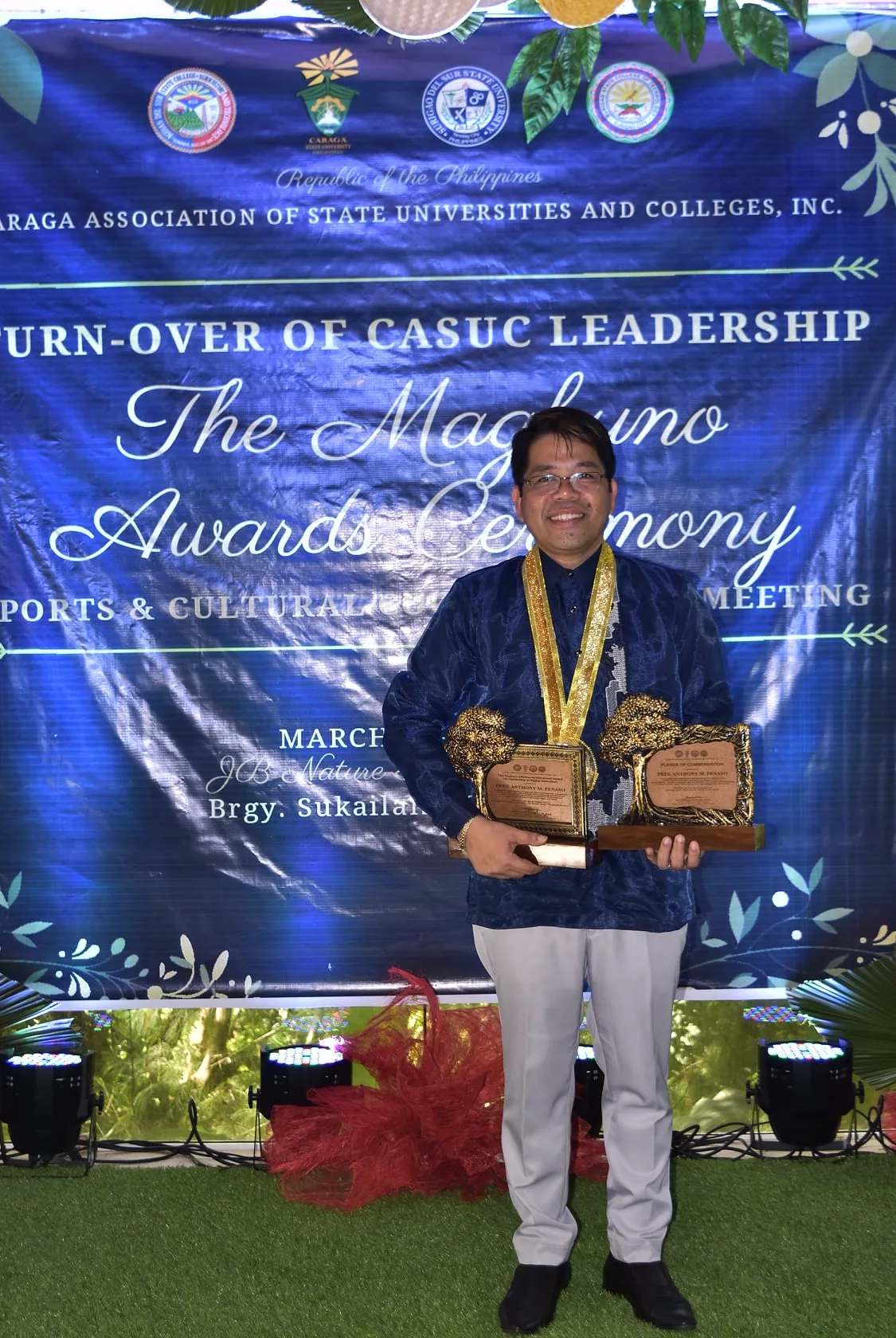 Dr. Anthony Penaso, Caraga State University President received the Magkuno Lifetime Achievement Award for Leadership in Higher Education and a Plaque of Commendation as former Caraga Association of State Universities and Colleges (CASUC) President.