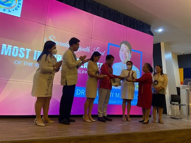 Saceda Youth Lead (SYL) with its Founder/President Dr. Dave Saceda himself came to Caraga State University himself to confer the MIT Award or the Most Inspiring Teachers of the Republic of The Philippines award to CSU President, Dr. Anthony M. Penaso. The awarding ceremony was held at the auditorium inside the newly built CSU-HERO Learning Commons building on November 19, 2021. It was attended by a number of CSU officials, guest and the SYL party.