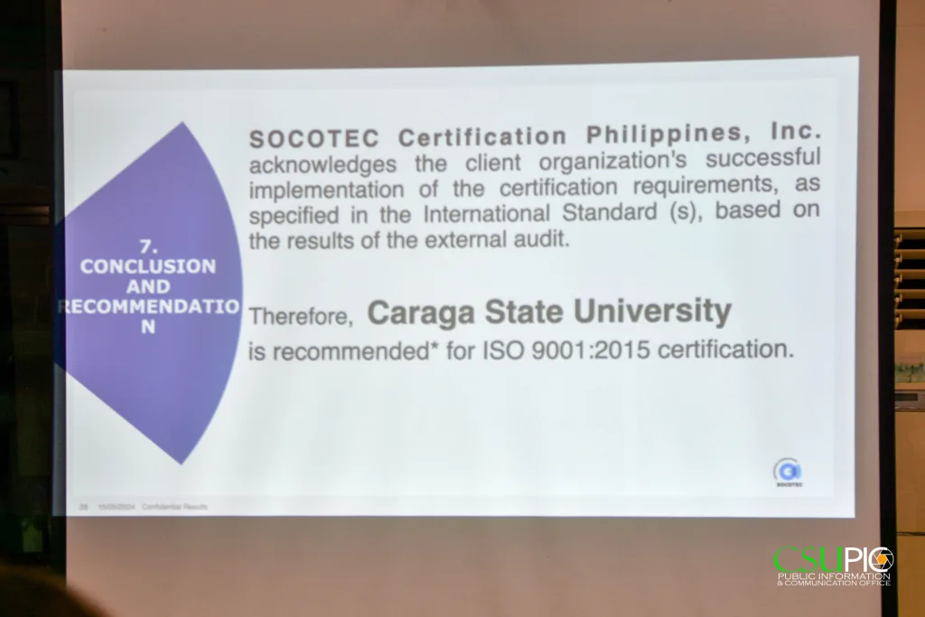 Following its ISO 9001:2015 recertification last year, Caraga State University (CSU) has maintained its globally recognized standards in operations, services, and systems for 2025.