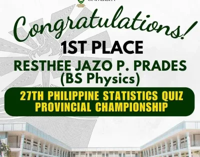 Two (2) math geniuses garnered top spots in the 27th Philippine Statistics Quiz Provincial Championship at the Philippine ...